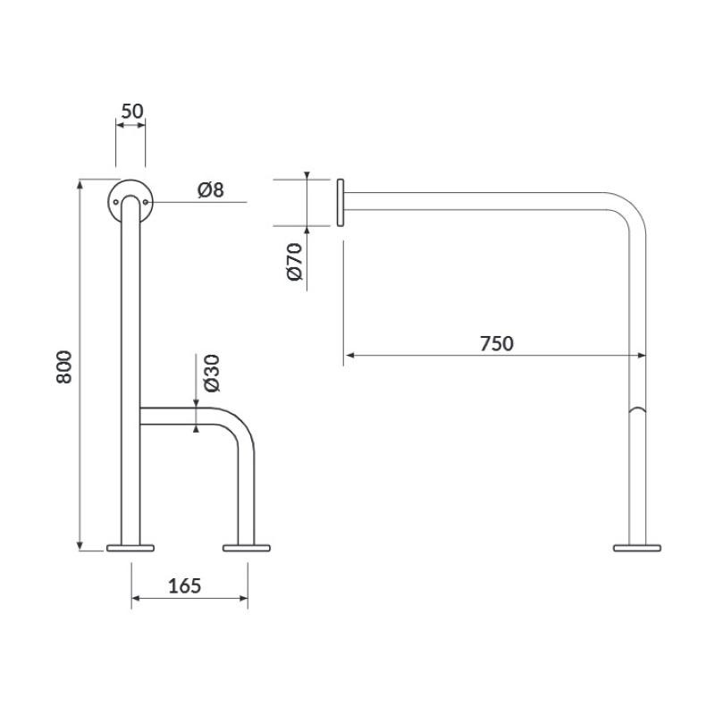 Колекція ETIUDA була спеціально розроблена для людей похилого віку та з обмеженими можливостями. Вона складається з компактного унітазу, умивальника та аксесуарів, які полегшують безпечне користування туалетом та ванною кімнатою без сторонньої допомоги. Серія товарів призначена для оснащення кімнат гігієни та санітарних приміщень в житлових приміщеннях та місцях загального користування, в тому числі в учбових закладах та лікарнях. Настінно-напольна конструкція поручня виготовлена з міцної хромованої сталі, надійно кріпиться до підлоги та здатна витримувати навантаження до 120 кг. Поручень має додаткову вертикальну площину фіксації із злегка заокругленими кутами згину та забезпечує повну підтримку при користуванні туалетом. Модель доступна в право- та лівосторонньому виконанні.