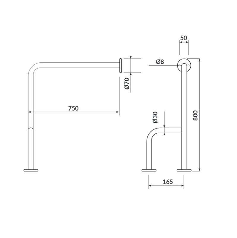 Колекція ETIUDA була спеціально розроблена для людей похилого віку та з обмеженими можливостями. Вона складається з компактного унітазу, умивальника та аксесуарів, які полегшують безпечне користування туалетом та ванною кімнатою без сторонньої допомоги. Серія товарів призначена для оснащення кімнат гігієни та санітарних приміщень в житлових приміщеннях та місцях загального користування, в тому числі в учбових закладах та лікарнях. Настінно-напольна конструкція поручня виготовлена з міцної хромованої сталі, надійно кріпиться до підлоги та здатна витримувати навантаження до 120 кг. Поручень має додаткову вертикальну площину фіксації із злегка заокругленими кутами згину та забезпечує повну підтримку при користуванні туалетом. Модель доступна в право- та лівосторонньому виконанні.