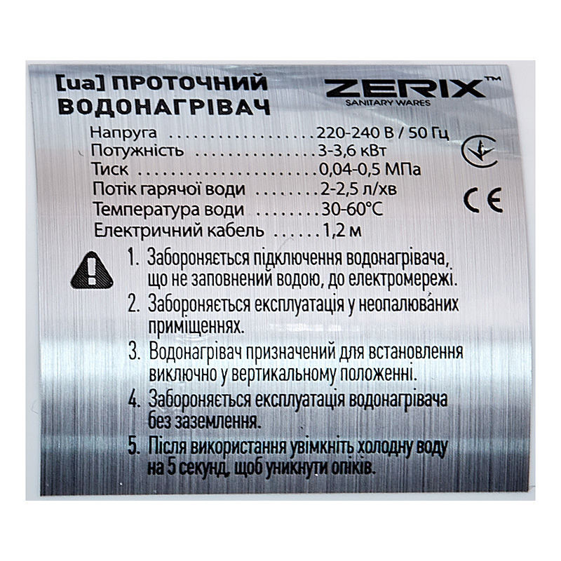 Опис Проточний водонагрівач ZERIX ELW22 (ZX4773)