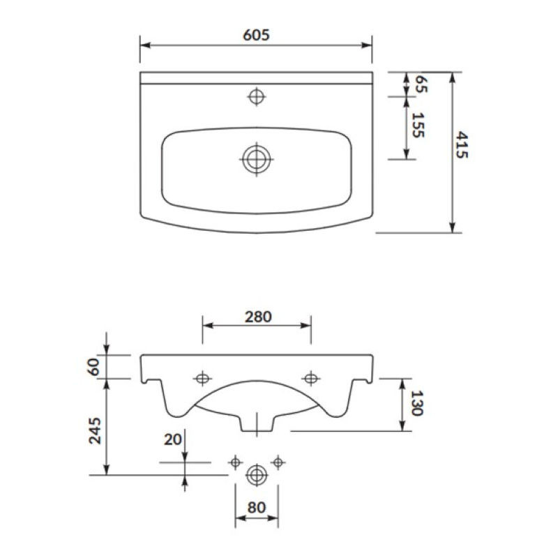 - розміри [см]: довжина × глибина × висота: 60,5 × 41,5 × 18,5
