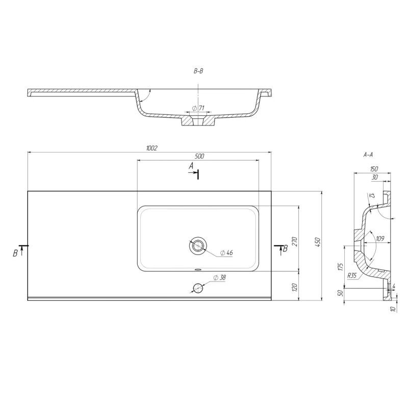 Діаметр зливного отвору,мм: 46