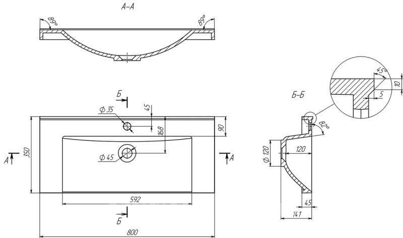 Діаметр зливного отвору,мм: 45