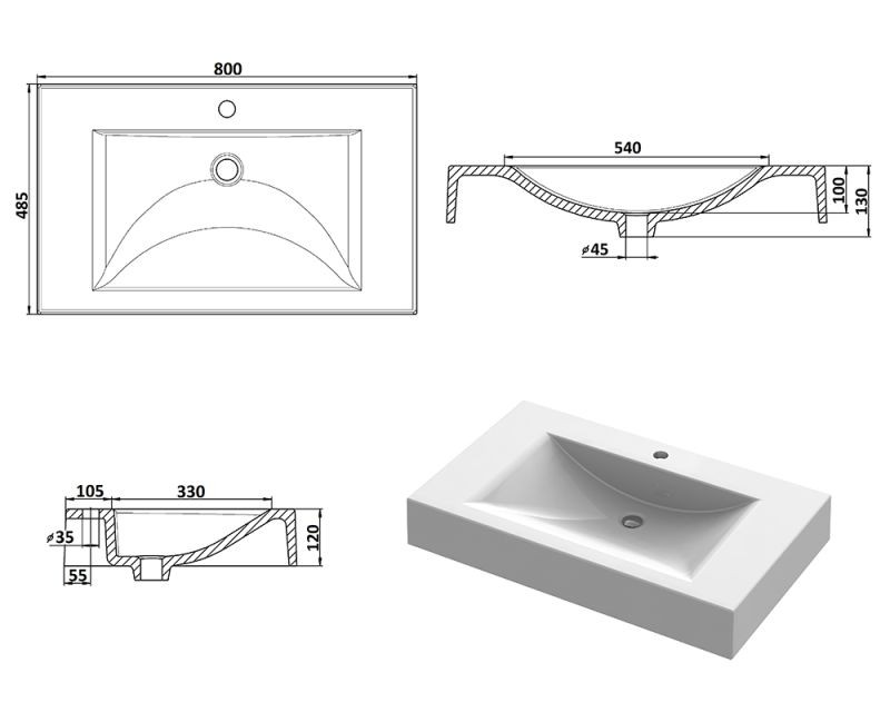 Умивальник "Атлант 800" - це ідеальне поєднання розкоші, гармонії і елегантності. Масивний капінос висотою 120мм виразно підкреслює форму класичного суворого умивальника, а м'які і плавні лінії чаші додають умивальнику вишуканість і чарівність. Завдяки високому капиносу умивальник можна підвішувати на кронштейни або іншу якусь металеву конструкцію, яка "сховається" за високим капіносом і додасть умивальнику "ширяючий в повітрі ефект"! Або можна встановити умивальник на тумбу і він так само гармонійно впишеться у Ваш дизайн!