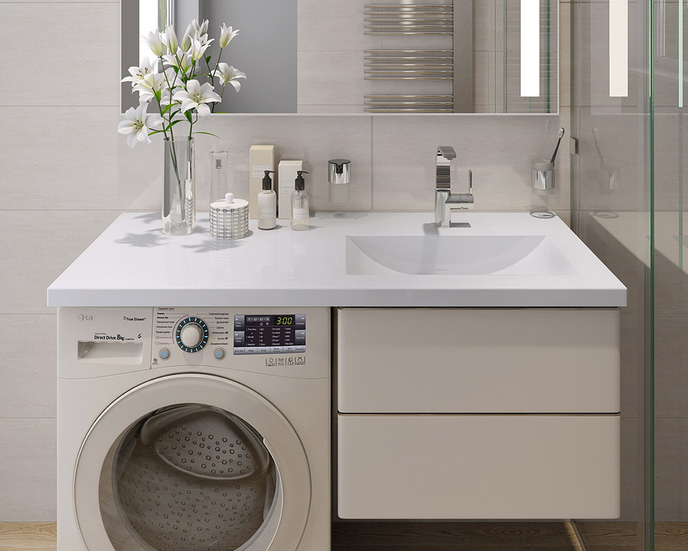 Умивальник «Юнона R» - це ідеальне дизайнерське рішення для ванних кімнат, де необхідно шукати нестандартні рішення, які дозволять розмістити пральну машину і зробити при цьому ванну кімнату комфортної. Таким рішенням може бути установка машинки під раковиною «Юнона». Цим досягається економія простору і отримується привабливий зовнішній вигляд. Відмітна ознака такої раковини — простота у догляді. Поверхня таких виробів цілісна, тому забруднюється такий умивальник менше, що полегшує догляд за ним. Раковина із стільницею не забирає простір приміщення, а, навпаки, робить його більш функціональним. Під стільницею можна розмістити шафки, полички, які можна відвести для зберігання найчастіше використовуваних власником предметів. У маленькій ванній завжди є місце для установки пральної машинки під загальну стільницю з умивальником. Вона може бути просто навісною з суцільнолитою раковиною, або на ніжках, з вбудованою шафкою під мийкою. У умивальнику «Юнона» чаша може розташовуватися з правого або з лівого боку стільниці, що допоможе знайти Вам ідеальне рішення під Ваші потреби.