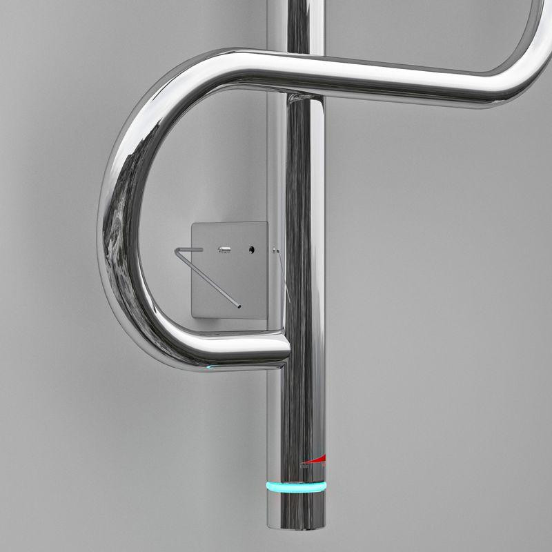Терморегулятор - крутилка знаходиться в нижній частині стійки рушникосушарки. Для увімкнення нагрівання після підключення до мережі потрібно повернути регулятор за годинниковою стрілкою(праворуч) до характерного клацання. При включеному нагріванні смужка регулятора світиться світло-синім кольором. Має три положення роботи рушникосушарки, які перемикаються один за одним по колу .В першому положенні забезпечує роботу приладу на 30-35% потужності(ледь теплий), в другому положенні - 65-70% потужності(теплий), третє положення – 100% потужності(гарячий). Для збільшення нагріву потрібно прокрутити регулятор-крутилку за годинниковою стрілкою(праворуч). Для відключення нагрівання рушникосушарки потрібно прокрутити регулятор проти годинникової стрілки(ліворуч) до клацання (підсвічування вимкнено).