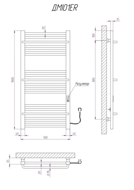 Рушникосушарка дизайнерська "Міра" розміром 1000х500 мм з 18 секціями, виготовлена з високоякісної сталі та порошковим покриттям. Основні характеристики: