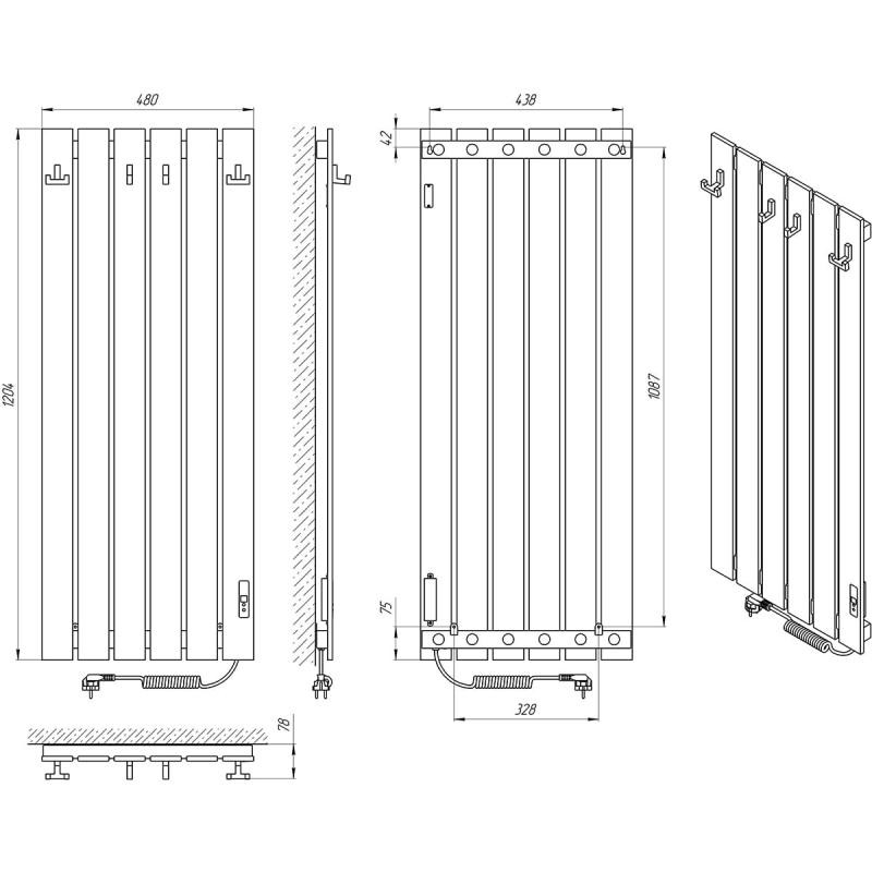 Рушникосушарка – 1 шт, кріплення (шуруп оцинкований з дюбелем) - 4 шт, гачок (WL 01) - 2 шт, гачок (WL 02) - 2шт, гвинт М3х12 - 8 шт, ключ шестигранний – 1 шт, упаковка (короб картонний, чохол поліетиленовий, чохол поліетиленовий для кріплення, коробочка для кріплень) – 1 шт, паспорт – 1 шт.