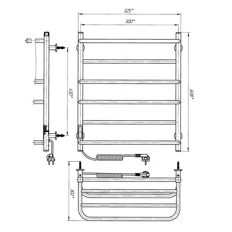 Особливості: керує нагрівом електрорушникосушарки мікропроцесорний термоконтроллер (кнопкове управління). Для початку роботи необхідно задати температуру рушникосушарки. Термодатчик контролює температуру поверхні рушникосушарки, що виключає можливість її перегріву. Серед переваг регулятора - зберігання обраного режиму роботи (при відключенні робота відновитися в запрограмованому користувачем режимі), наявність таймера відключення (3h) і колірної індикації роботи!
