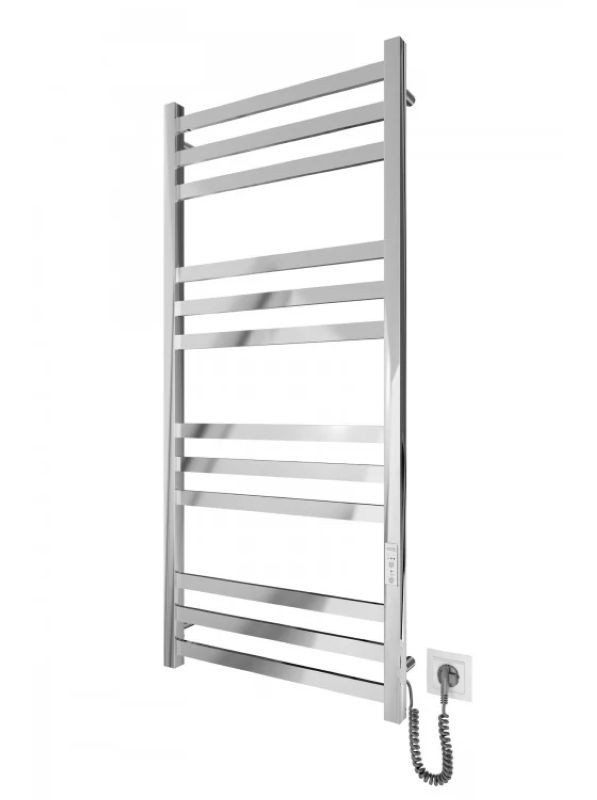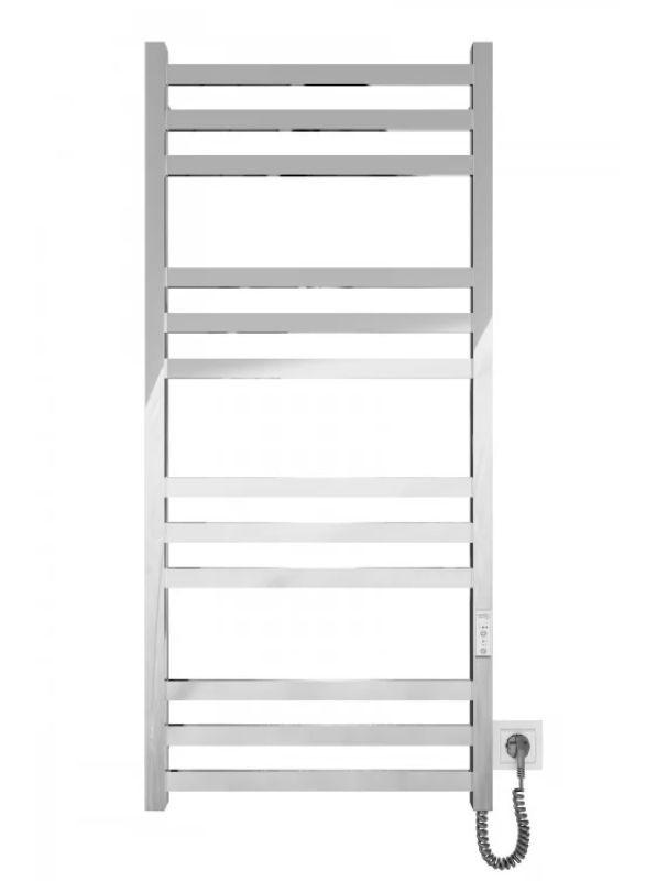 Електрорушникосушка Mario Чикаго-I 1170х530/80 TR K. Обладнана таймером-регулятором і конектором для підключення в розетку з будь-якої сторони. Сумісний із комплектом прихованого підключення. Має 12 ребер та стійки з профільної труби. Виготовлений із полірованої нержавіючої сталі без хромування. Варіанти покриття: полірований або сатин, чорний мат, білий глянець, золото, бронза. Температурні режими таймер-регулятора: 40 ° С, 45 ° С, 50 ° С. Варіанти часу: 3, 6 годин та постійне нагрівання. Потужність 155 Вт. Додатково для зручності використання можна оснастити навісними гачками. Гарантія - 20 років на корпус / 5 років на електричну частину