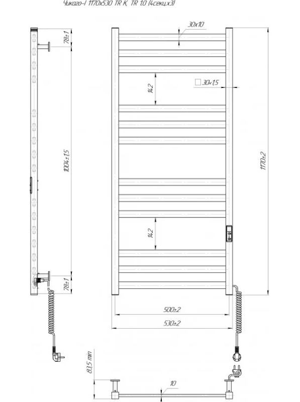 Примітка: Електричний сушка для рушників Маріо Чикаго-I TR може бути переобладнаний під прихований монтаж (приховане підключення), для цього потрібно додатково придбати Комплект прихованого підключення шнура. Деталі уточнюйте у продавця.