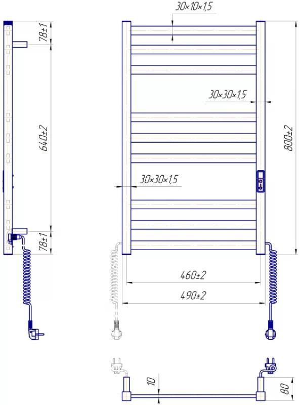 Електросушарка для рушників побутова Чикаго-І 800х500/80 TR K. Обладнана таймер-регулятором та конектором для підключення в розетку з будь-якого боку. Сумісна з комплектом прихованого підключення. Має 9 ребер та стояки з профільної труби. Виготовлена з полірованої нержавіючої сталі без хромування. Варіанти покриття: полірована або сатин, чорний мат, білий глянець, золото, бронза. Температурні режими таймер-регулятора: 40°С, 45°С, 50°С. Варіанти часу роботи: 3, 6 годин та постійний нагрів. Потужність 115 Вт. Додатково для зручності користування можна оснастити навісними гачками. Гарантія - 20 років на корпус / 5 років на електричну частину.