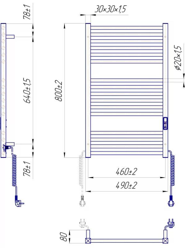 Електросушарка для рушників побутова Гера-I 800х500/80 TR К. Обладнана таймер-регулятором та конектором для підключення в розетку з будь-якого боку. Сумісна з комплектом прихованого підключення. Має 16 ребер та стояки з профільної труби. Виготовлена з полірованої нержавіючої сталі без хромування. Варіанти покриття: полірована або сатин, чорний мат, білий глянець, золото, бронза. Температурні режими таймер-регулятора: 40°С, 45°С, 50°С. Варіанти часу роботи: 3, 6 годин та постійний нагрів. Потужність 170 Вт. Додатково для зручності користування можна оснастити навісними гачками. Гарантія - 20 років на корпус / 5 років на електричну частину.