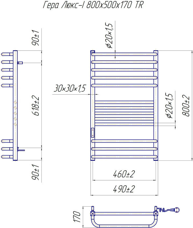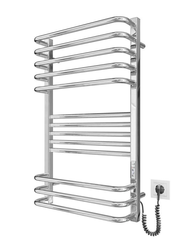 Електросушарка для рушників побутова Гера-Люкс-I 800х500/170 TR К. Обладнана таймер-регулятором та конектором для підключення в розетку з будь-якого боку. Сумісна з комплектом прихованого підключення. Має 13 ребер та стояки з профільної труби. Виготовлена з полірованої нержавіючої сталі без хромування. Варіанти покриття: полірована або сатин, чорний мат, білий глянець, золото, бронза. Температурні режими таймер-регулятора: 40°С, 45°С, 50°С. Варіанти часу роботи: 3, 6 годин та постійний нагрів. Потужність 175 Вт. Додатково для зручності користування можна оснастити навісними гачками. Гарантія - 20 років на корпус / 5 років на електричну частину.