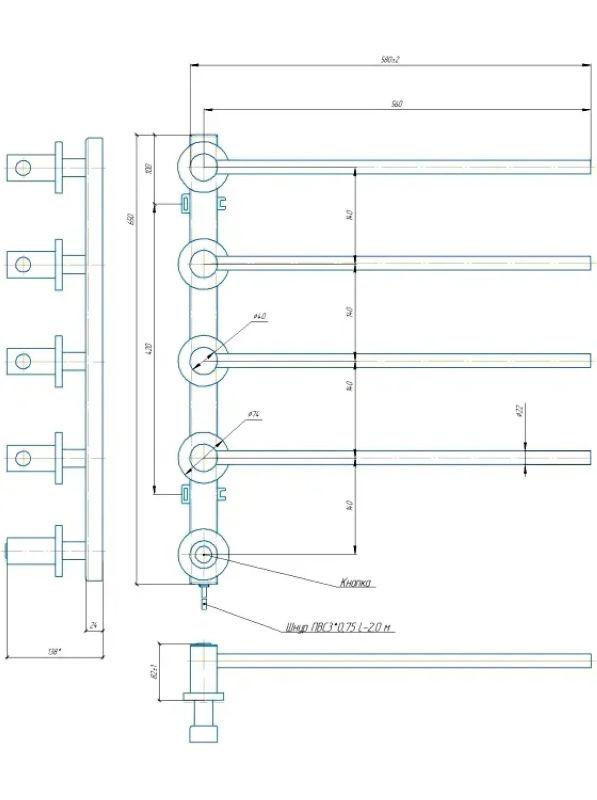 Електросушарка для рушників побутова Іннова 625x595. Ця модель монтується прямо у стіну. Вона не має класичних кріплень та масивної стійки, а лише витончені функціональні ребра, які ніби зависли у повітрі. Тим не менш, така рушникосушарка однозначно буде привертати увагу та повністю виконувати свої функції. Особливості та переваги рушникосушарки Іннова: