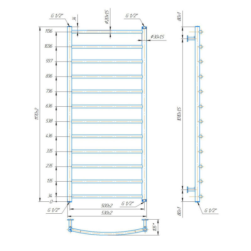 Сушка для рушників Маріо INOX Класик 1170х530/500 - класична драбинка, що підходить в дизайн практично будь-якої ванної кімнати. Надійний і строгий за формою сушки для рушників перевірений часом, виготовляється більше 10 років. Класик одна з найбільш продаваних моделей свого сегменту. Виготовлений сушка для рушників з високоякісної європейської нержавіючої сталі марки AISI 304. Через невелику глибину і ширину, сушки для рушників вийшов ергономічним і з легкістю поміститься на вузьких стінах невеликих ванних кімнат.