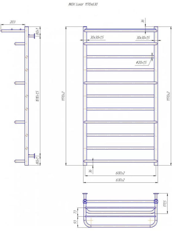 Опис Рушникосушарка Mario INOX Люксор 1170х630/600 (1.7.044588.P)