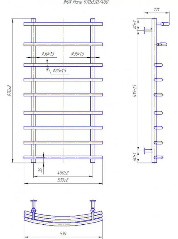Водяна сушка для рушників INOX Маріо 970х530/400 відрізняється від інших моделей сегменту "Практик" своїм незвичайним дизайном. Це флагманська модель водяного сушки для рушників виробничого підприємства Маріо. Дана модель сушки для рушників набула широкого попиту у покупців і з моменту своєї появи щомісяця потрапляє в ТОП продажів. Виготовлений водяний сушка для рушників Маріо 970x530 з європейської нержавіючої сталі марки AISI 304. Сушка для рушників Маріо прикрасить вашу ванну кімнату і стане її родзинкою.