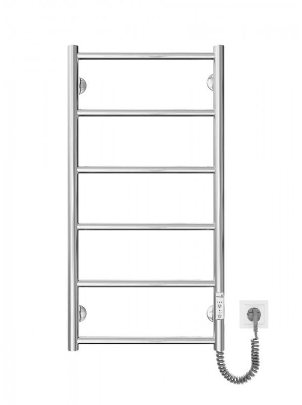 Електричний сушарка для рушників Класик F HP - I 800x430 TR K з таймером і регулятором виготовлена з нержавіючої сталі. Номінальна потужність рушникосушарки 75W, складається з 6 ребер. Максимальна температура нагрівання становить 55 °C. Для економії електроенергії в конструкції передбачений таймером на 3 та 6 годин роботи, а також три варіанти регулювання температури - 40 °С, 45 °С та 50 °С.