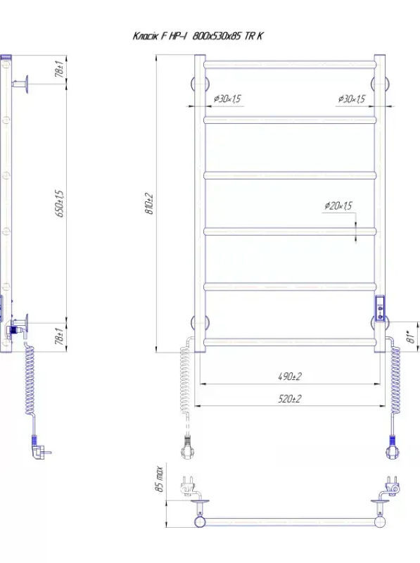 Примітка: Електричний сушка для рушників Маріо Класік F HP - I 800x530 TR з таймером і регулятором може бути переобладнаний під прихований монтаж (приховане підключення), для цього потрібно додатково придбати Комплект прихованого підключення шнура. Деталі уточнюйте у продавця.