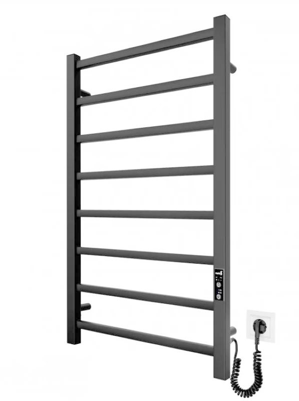 Електросушарка для рушників побутова Токіо-I 800х500/80 TR К. Обладнана таймер-регулятором та конектором для підключення в розетку з будь-якого боку. Сумісна з комплектом прихованого підключення. Має 8 ребер та стояки з квадратного профілю. Виготовлена з полірованої нержавіючої сталі без хромування. Варіанти покриття: полірована або сатин, чорний мат, білий глянець, золото, бронза. Температурні режими таймер-регулятора: 40°С, 45°С, 50°С. Варіанти часу роботи: 3, 6 годин та постійний нагрів. Потужність 120 Вт. Додатково для зручності користування можна оснастити навісними гачками. Гарантія - 20 років на корпус / 5 років на електричну частину.