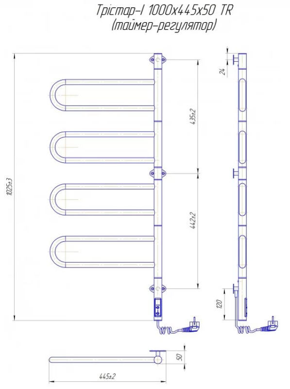 Електрична сушка для рушників Тристар -I 1000х445 TR номінальна потужність 115W, складається з 4 ребер. Сушка для рушників Тристар виробничого підприємства Mario виготовлений з нержавіючої сталі. Максимальна температура нагрівання становить 50 °C. Для економії електроенергії в конструкції передбачений таймером на 3 та 6 годин роботи, а також три варіанти регулювання температури - 40 °С, 45 °С та 50 °С.