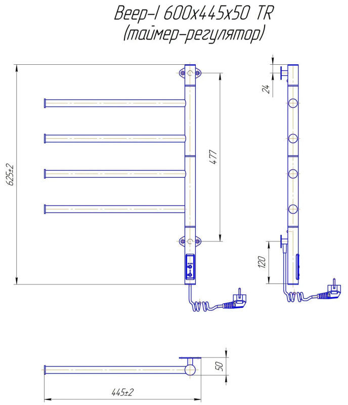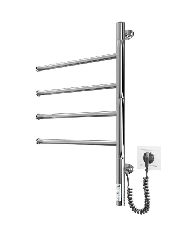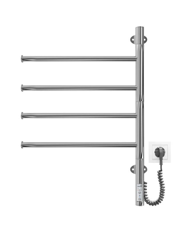 Електросушарка для рушників побутова Веєр-I 600х445/55 TR. Обладнана таймер-регулятором. Можлива варіація з комплектом прихованого підключення. Має 4 ребера які повертаються на 180* та стояки з круглої труби, . Виготовлена з полірованої нержавіючої сталі без хромування. Варіанти покриття: полірована. Температурні режими таймер-регулятора: 40°С, 45°С, 50°С. Варіанти часу роботи: 3, 6 годин та постійний нагрів. Потужність 50 Вт. Додатково для зручності користування можна оснастити навісними гачками. Гарантія - 5 років.