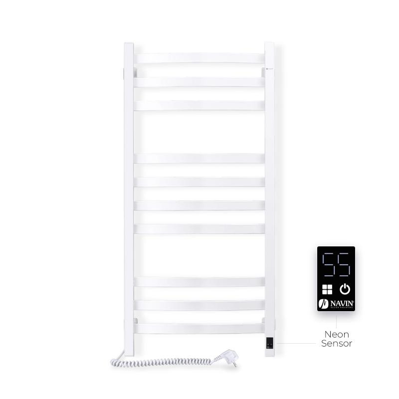 Електрична рушникосушарка Navin Avalon 480х1000 Sensor (розташування шнура з вилкою — ліворуч колір – білий) виготовлена з вуглецевої сталі, яка відрізняється високою якістю і міцністю.