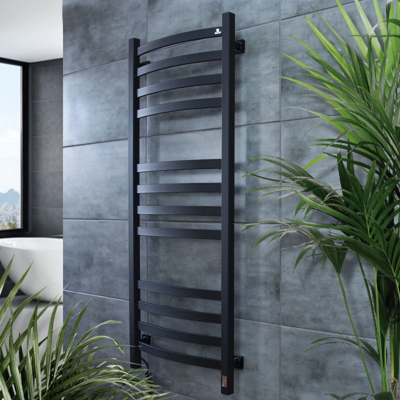 Технічні характеристики електричної рушникосушарки Navin Avalon 480х1200 Sensor з Wi-Fi (розташування шнура з вилкою — праворуч, колір – чорний муар) виготовлена з вуглецевої сталі, яка відрізняється високою якістю і міцністю.