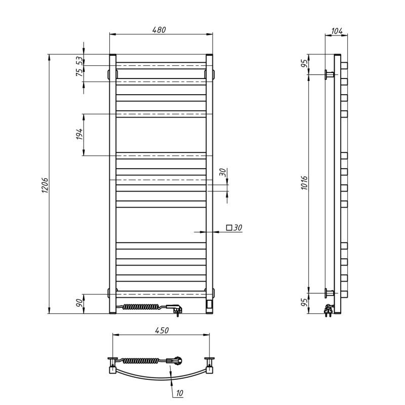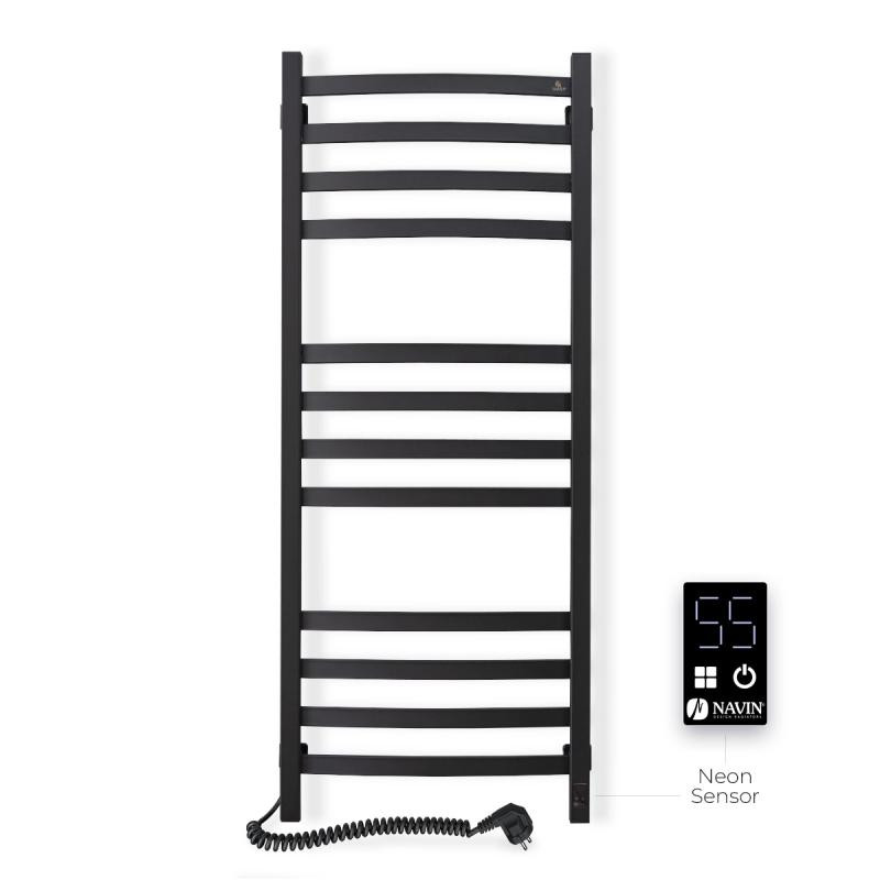 Електрична рушникосушарка Navin Avalon 480х1200 Sensor (розташування шнура з вилкою — ліворуч, колір – чорний муар) виготовлена з вуглецевої сталі, яка відрізняється високою якістю і міцністю.