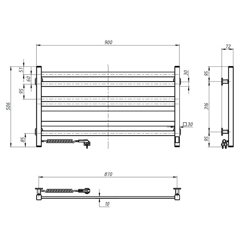 Широка електрична сушарка для рушників NAVIN Авангард — яскравий зразок мінімалізму. Модель має бічні колектори (стійки), виконані з профільної квадратної труби 30х30 мм, а перемички — з прямокутних трубок 30х10 мм. Це створює просту, строгу й доконечно привабливу геометричну гармонію. Продумане розташування й оптимальні розміри елементів надають рушникосушкам Авангард лаконічність, монументальність і однозначність форми.