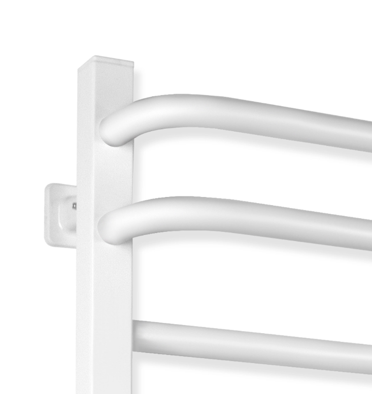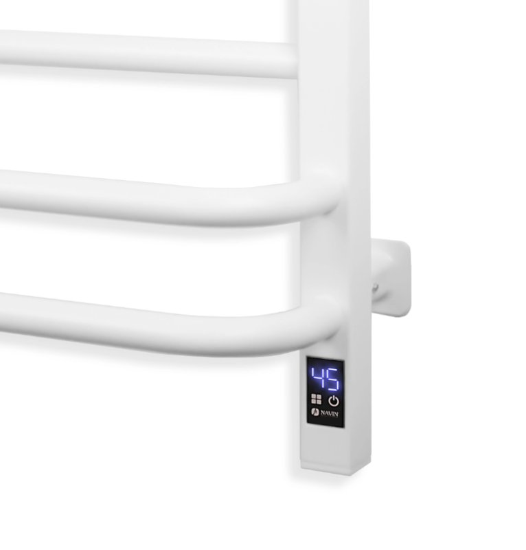 Електрична сушарка для рушників NAVIN Грандіс. Модель має бічні колектори (стійки), виконані з профільної квадратної труби 30х30 мм, а перемички — з круглих трубок 20х20 мм. Це створює просту, строгу й доконечно привабливу геометричну гармонію.