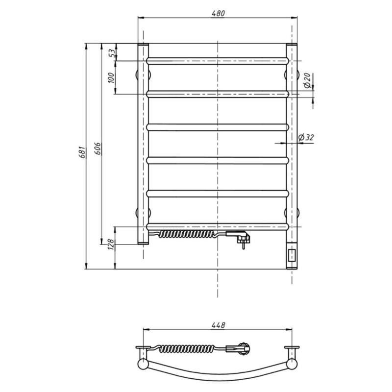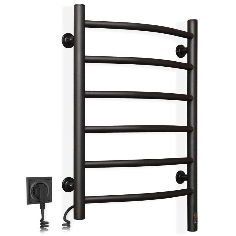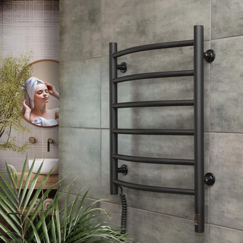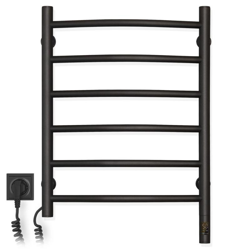 Рушникосушка Камелія 480х600 Sensor (розташування шнура з вилкою — ліворуч) виготовлена з вуглецевої сталі високої якості й міцності. Модель має порошкове покриття (колір — чорний муар). Товщина стінки колекторів (стійок) і перемичок сушарки дорівнює 1,5 мм.