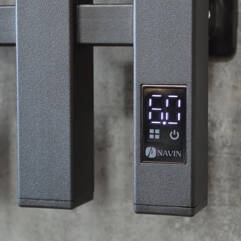Електрична сушка для рушників Levante 450х1400 Sensor від українського виробника NAVIN. Компактні розміри сушки для рушників роблять її ідеальним вибором для сучасних ванних кімнат, де важливі як функціональність, так і естетика. Модель оснащена сенсорним блоком NAVIN SENSOR, що дозволяє легко регулювати температуру і встановлювати оптимальний час використання сушарки для рушників. Сушка для рушників Navin Levante 450х1400 Sensor (розташування шнура з вилкою — праворуч) виготовлений з вуглецевої сталі високої якості та міцності. Модель має порошкове покриття (колір – чорний муар).
