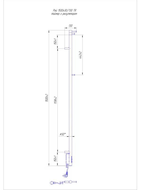 Електросушарка для рушників побутова Рей-I 1500x30/130 TR. Обладнана таймер-регулятором. Сумісна з комплектом прихованого підключення. Має стояк круглої форми. Виготовлена з полірованої нержавіючої сталі без хромування. Варіанти покриття: полірована, сатин, чорний мат. Температурні режими таймер-регулятора: 40°С, 45°С, 50°С. Варіанти часу роботи: 3, 6 годин та постійний нагрів. Потужність 35 Вт. Гарантія - 20 років на корпус / 5 років на електричну частину.