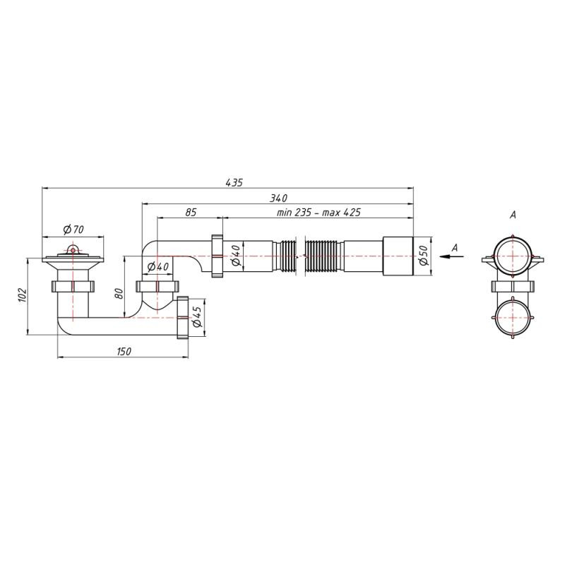 додаткові характеристики:Довжина гофрованої труби: 235 - 425 мм.