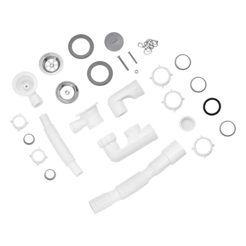 Комплектація | Сифон, різьбовий випуск, гнучкий круглий перелив, ревізія, гофротруба, нержавіюча сітка |