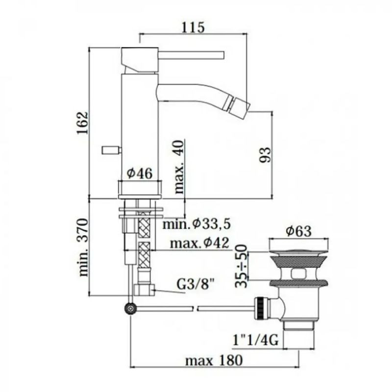 Змішувач для біде Paffoni Light LIG135NO у чорному кольорі призначений для ванних та туалетних кімнат із сучасним мінімалістичним дизайном. Змішувач встановлюється на один отвір, має гнучкі під'єднувальні шланги. Аератор змішувача можно рухати за допомогою шарового шарніру, що надає можливість спрямовувати поток води у необхідному напрямку. У комплекті є механічний ричажний донний клапан, який легко закриває та відкриває злив без контакту з водою.
