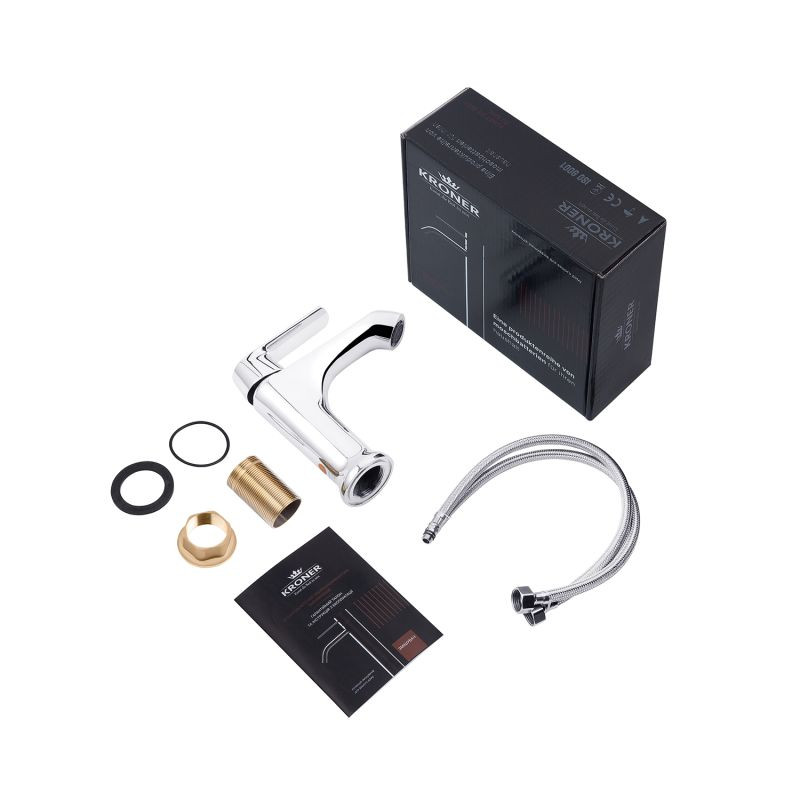 Змішувач для умивальника Kroner KRP Armada-C010 CV024309 виконаний з латуні та має гладку хромовану поверхню. Наявність аератора гарантує рівний струмінь без бризок. Керамічний картридж 35 мм забезпечує плавний хід важеля довгі роки. Завдяки своїм універсальним розмірам та формі, змішувач буде чудово виглядати у сучасних та класичних інтер'єрах.