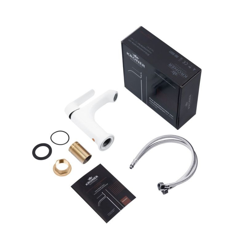 Змішувач для умивальника Kroner KRP Armada-W010 CV024320 виконаний з латуні та має гладку білу поверхню. Наявність аератора гарантує рівний струмінь без бризок. Керамічний картридж 35 мм забезпечує плавний хід важеля довгі роки. Завдяки своїм універсальним розмірам та формі, змішувач буде чудово виглядати у сучасних та класичних інтер'єрах.