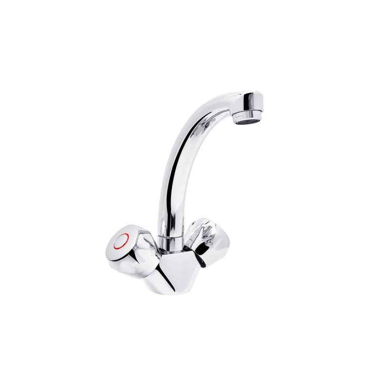 Змішувач для умивальника Kroner KRP Hamburg-C010 CV014912 виготовлений з латуні та має хромовану глянсову поверхню. Змішувач оснащений картриджем діаметром 40 мм, який відповідає за плавний хід важеля та точне налаштування температури та напору води. Змішувач встановлюється на раковину за допомогою гайки на 1 отвір і підключається гнучкими шлангами, що входять до комплекту постачання.