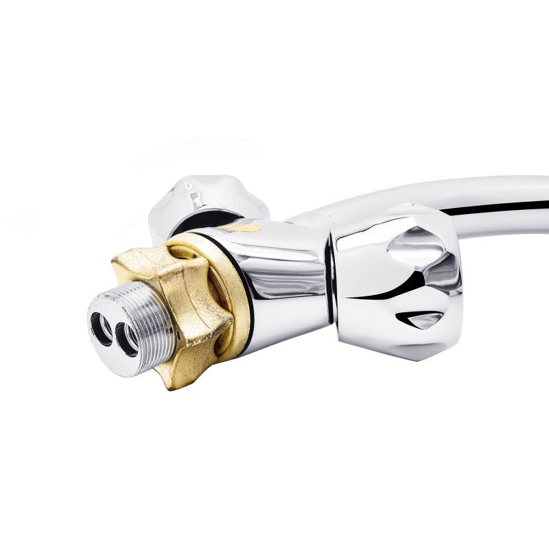Серія змішувачів для ванної кімнати Hamburg від німецького виробника Kroner виконана в класичному стилі з двовентильним керуванням. Рукоятки мають округлу ергономічну форму, а керамічні кран-букси забезпечують точне налаштування температури та напору води. Завдяки подвійному хром-нікелевому покриттю поверхня змішувача гладка та глянсова, вода максимально стікає з корпусу та не засихає, що значно спрощує догляд за змішувачами.