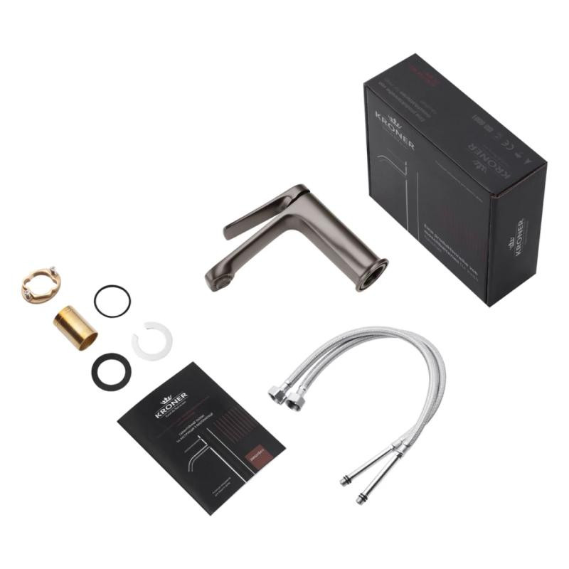 Змішувач для раковини Kroner KRP Makon - GRP010 із серії Makon — це сучасне та функціональне рішення для ванної кімнати. Він виготовлений із високоякісної латуні, що забезпечує міцність і довговічність виробу. Матовий графітовий колір надає змішувачу стильного та елегантного вигляду, а також спрощує догляд за ним.