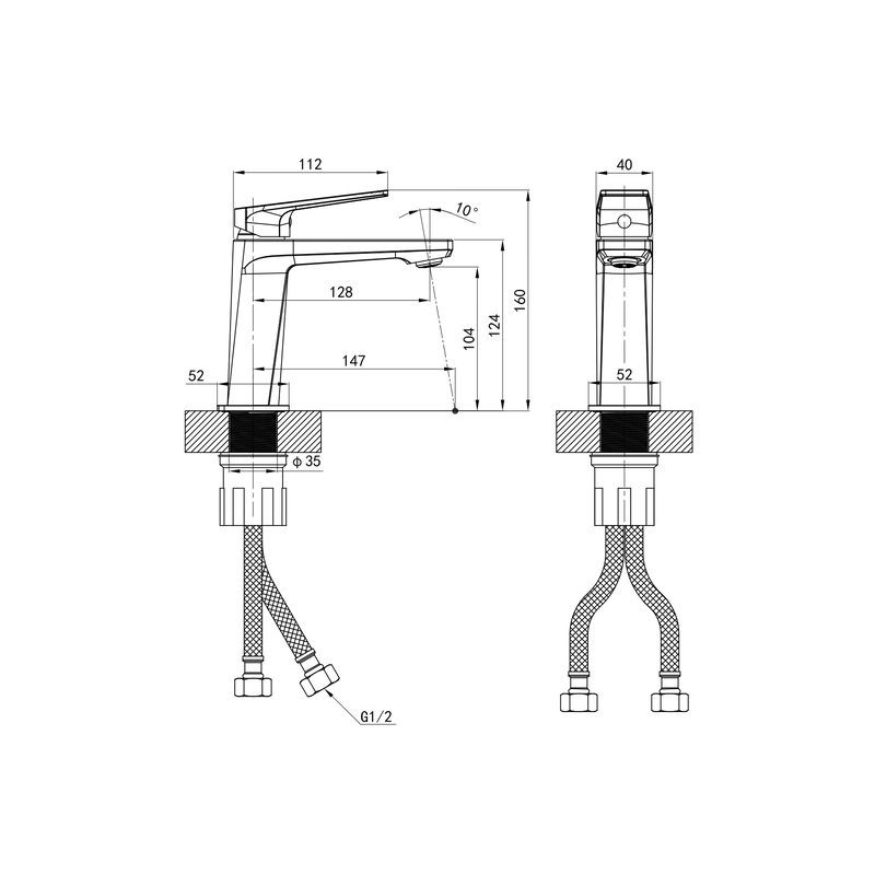 • Діаметр шланга підключення: 1/2"