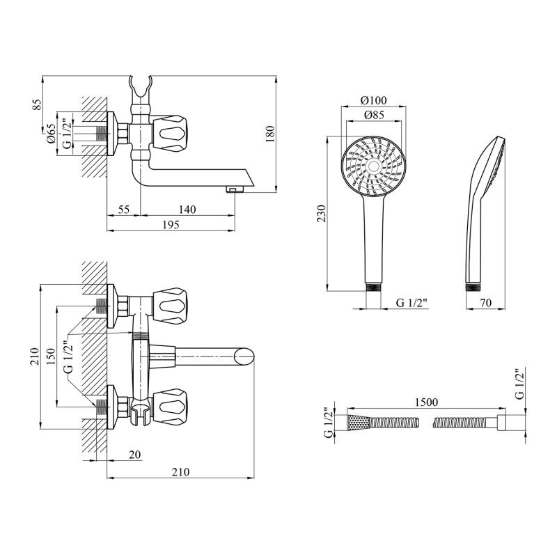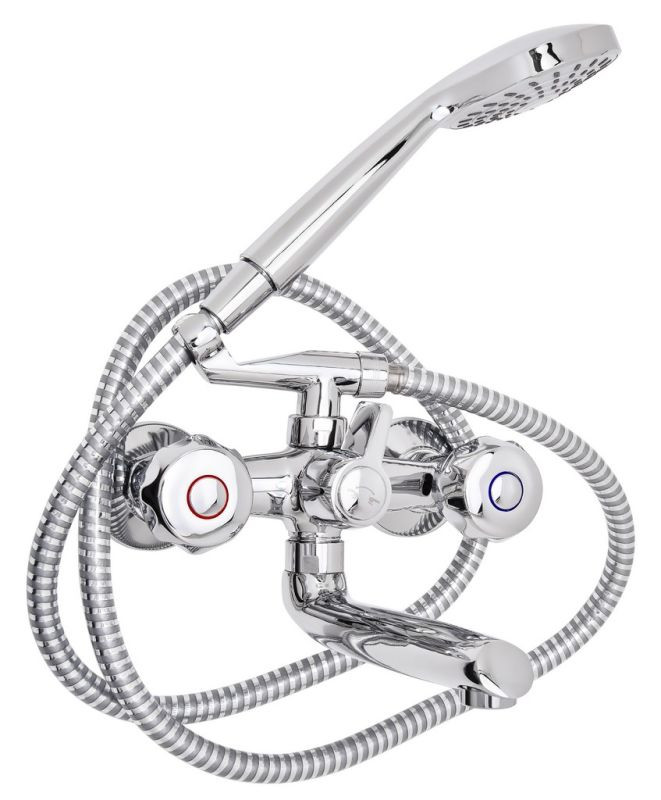 Змішувач для ванни з душовим набором Kroner KRP Hamburg-C060 CV014913 виготовлений з латуні та має хромоване покриття. Встановлюється на стіну на два отвори за допомогою ексцентрикових підключень. Поворотний вилив можна відвертати до стіни, щоб не заважав під час прийняття душу. Душовий набір складається з ручного душу діаметром 10 см та шланга. Тримач для душу вбудований зі змішувачем.