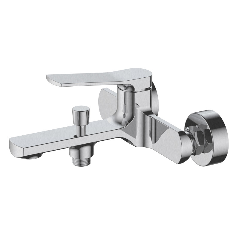 Змішувач для ванни Volle Solo 1510.031002 із оригінальним кольором покриття - шліфований нікель, виготовлений із високоякісної латуні. Одноважільна конструкція змішувача оснащена керамічним картриджем, який дозволяє контролювати температуру та напір води. Великий винос виливу дає можливість комбінувати його з ваннами навіть з дуже широкими бортами, але при цьому вилив не заважатиме при прийнятті душу. Встановлюється змішувач на стіну, на два отвори за допомогою ексцентриків, що входять до комплекту постачання.