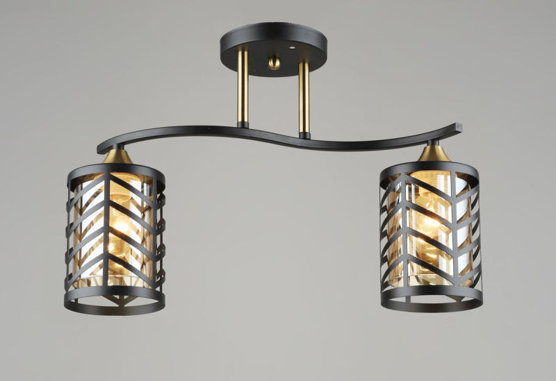 Стельова люстра VALESO N5943/2 — це втілення сучасного лофт-стилю та ретро-шарму, ідеальне для освітлення кухні, коридору або обідньої зони. Контрастне поєднання насиченого чорного кольору та елегантних мідних (COP) акцентів надає світильнику особливої виразності. Люстра виготовлена з міцної сталі та має прозорі скляні плафони, що дозволяють максимально розкрити красу декоративних ламп.