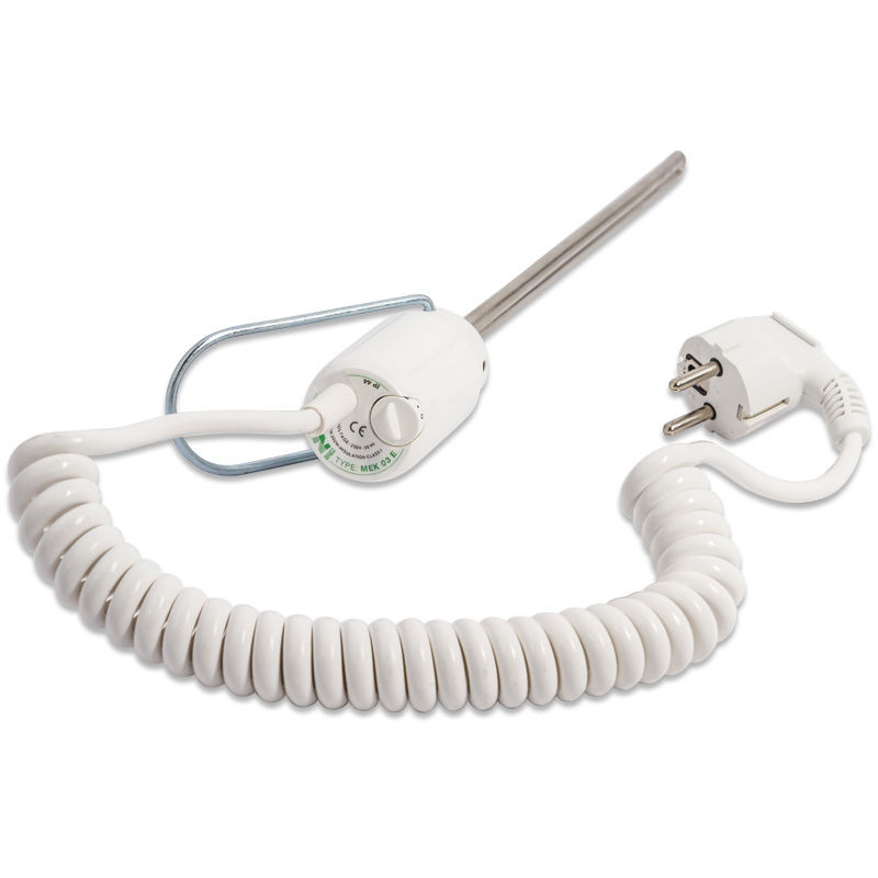 Механічним терморегулятором (термостат) виставляється і підтримується постійна температура рушникосушарки від +5 до + 65 ° C. ТЕН обладнаний вбудованим датчиком температури і автоматичним захистом від перегріву. ТЕН має індикатор "мережа" і термічний запобіжник, розміщені в пластмасовому корпусі з розмірами 41x50 мм. Ступінь електричної безпеки тена - IP44. ТЕН монтуються в нижню частину рушникосушки.