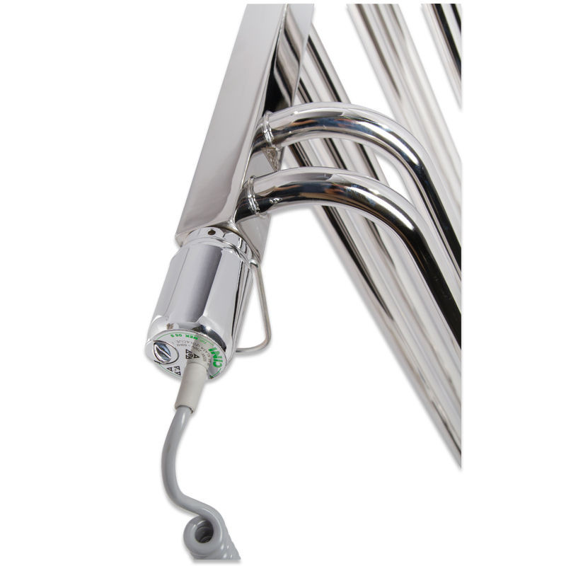Механічним терморегулятором (термостат) виставляється і підтримується постійна температура рушникосушарки від +5 до + 65 ° C. ТЕН обладнаний вбудованим датчиком температури і автоматичним захистом від перегріву. ТЕН має індикатор "мережа" і термічний запобіжник, розміщені в пластмасовому корпусі з розмірами 41x50 мм. Ступінь електричної безпеки тена - IP44. ТЕН монтуються в нижню частину рушникосушки.