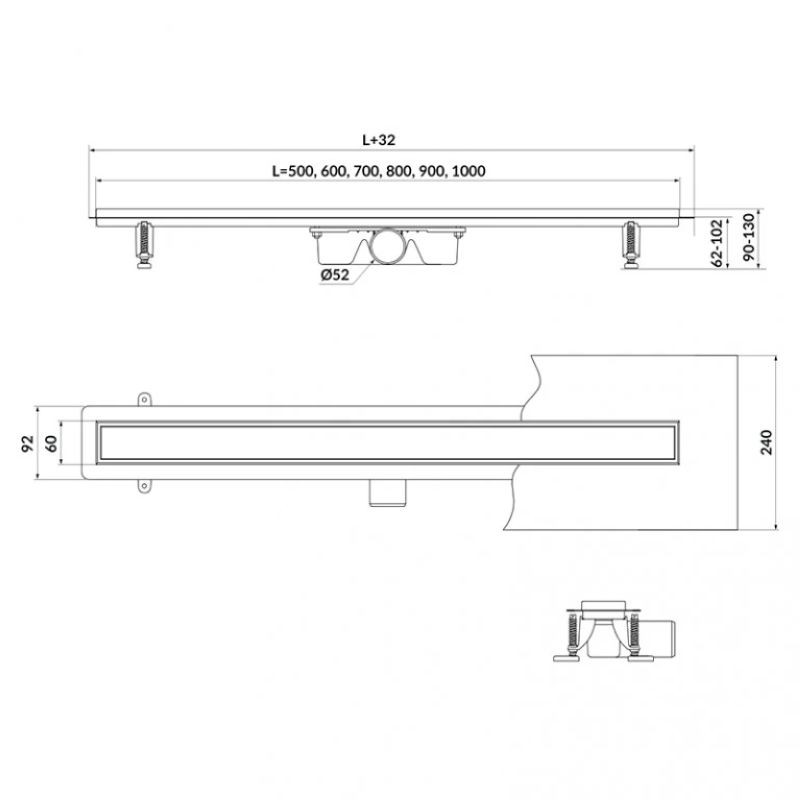 Лінійні трапи ТАКО виготовлені з високоякісної низьковуглецевої нержавіючої сталі AISI 304 товщиною 1мм, яка не піддається впливу хімічних речовин та стійка до корозії. Вбудований низький сифон оснащений спеціальним контейнером та сепаратором великих частинок, завдяки чому можливо швидко прочистити злив зверху. Класичний гідрозатвор перешкоджає потраплянню в приміщення неприємних запахів з каналізації. Пропускна здатність сифону до 56 л/хв, тому трап TAKO стане ідеальним рішенням для душової зони чи кабінки як з душовою системою з невеликим розходом води, так і з тропічним душем. Стандартна модель має двосторонню решітку: одна сторона має нержавіючу матову поверхню, а інша – пустотілий жолоб для можливості облицювання підлоговою плиткою. В комплект з трапом входять запчастини, необхідні для його монтажу: регульовані ніжки, які дозволяють виставити висоту в діапазоні 6-10 см, гідроізоляційна мембрана та гак для зняття решітки.