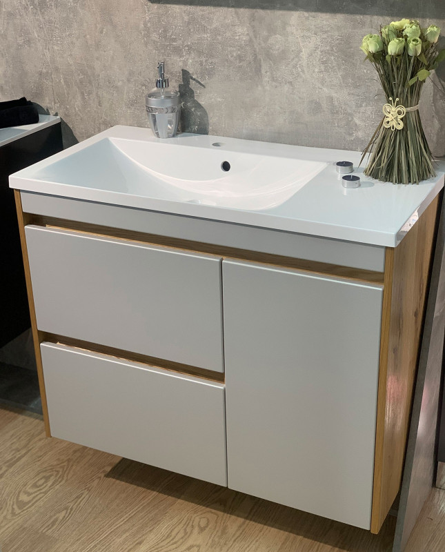 Тумба з умивальником Fancy Marble (Буль-Буль) Wega 900 L Дуб шпон Відгуки